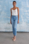 "Your dependable daily jean. This Daily Driver is a slim cigarette pant that has the versatility of a skinny, but with slightly more room throughout the leg. Constructed from our "Just Right" denim, it is mostly rigid with a touch of stretch.