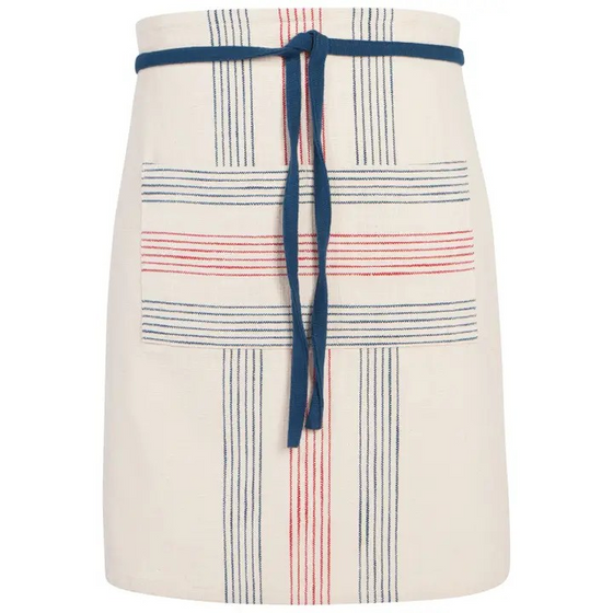 "Vintage-inspired aprons and oven mitts inspire the inner French chef in all of us. the fabric is woven using cotton slub yarns which adds texture and softness. Size: w30 x l20in | one size fits most Material content: 100% gots-certified organic cotton slub Care instructions: machine washes cold. Tumble dry low. do not bleach." DH