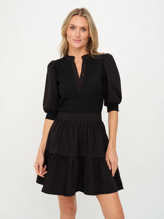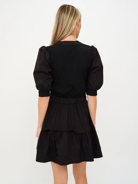 "Looking for a dress that's both elegant and fun? Look no further than the Annabelle dress. This dress features puffed sleeves and a v-neck with buttons that is perfect for a night out or a special occasion!